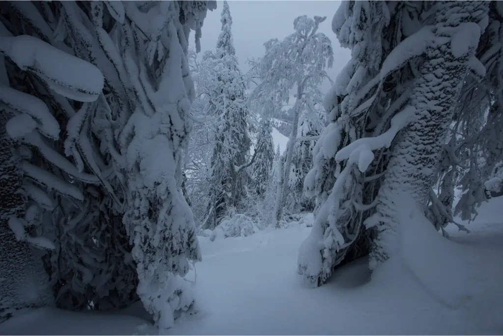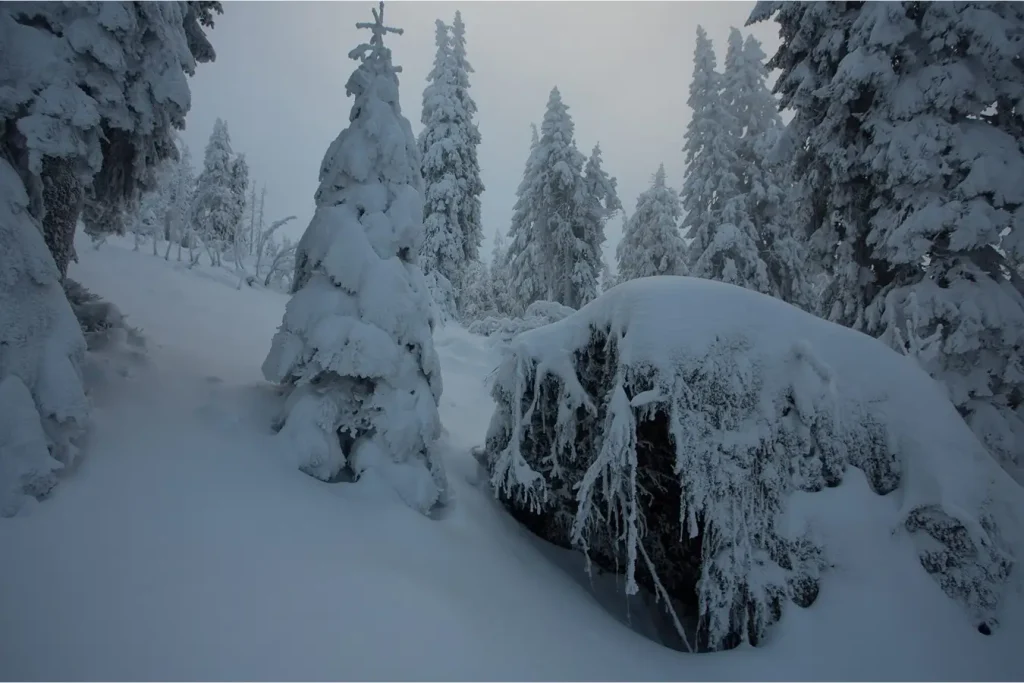 Zasneženým hlucháním lesom
